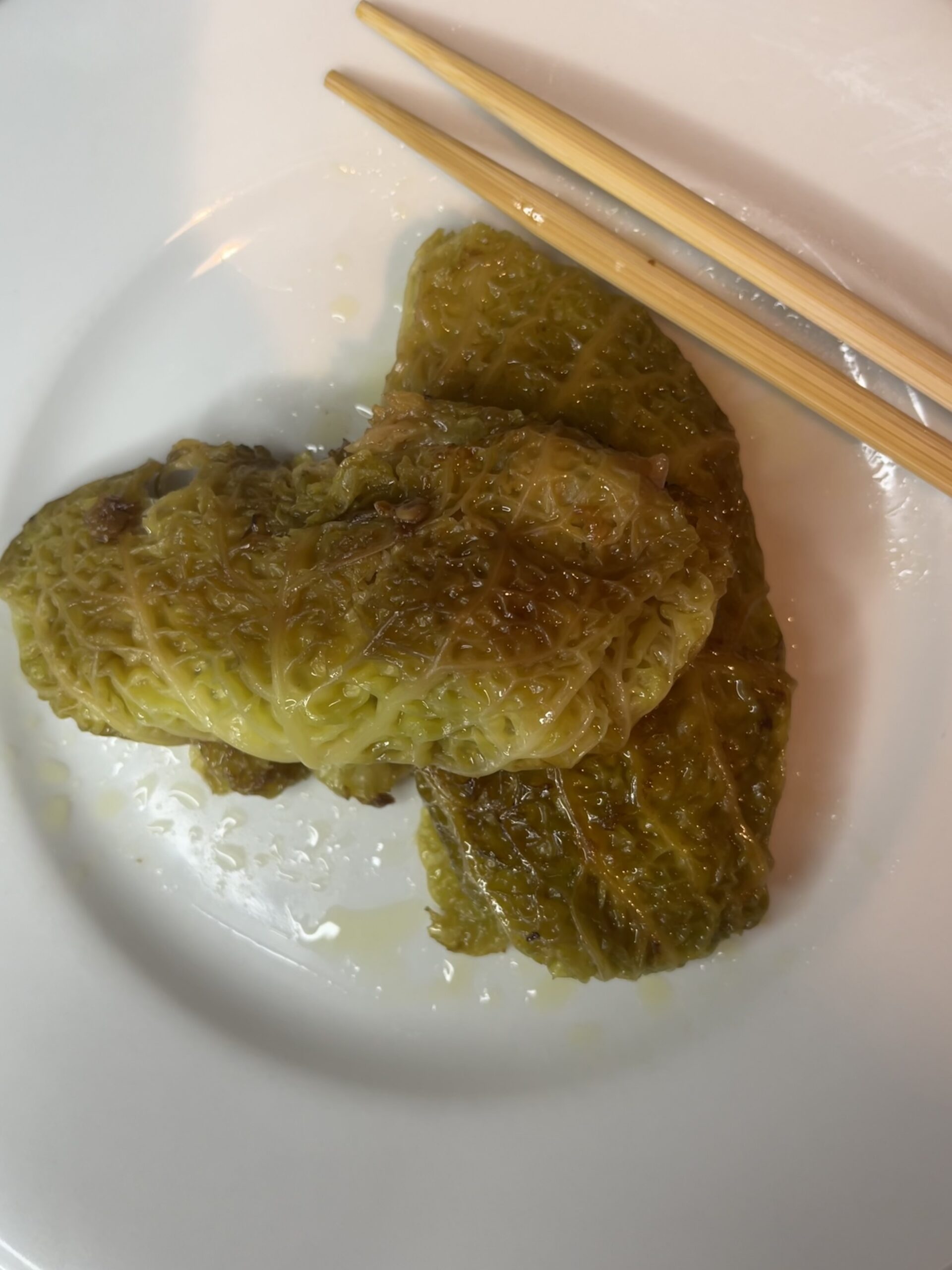 Involtini di verza con ripieno di verdure, pancetta e provola.