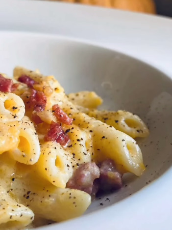 Pennette con crema di zucca, formaggio spalmabile e pancetta croccante: la ricetta di Impiattandoconpassione.